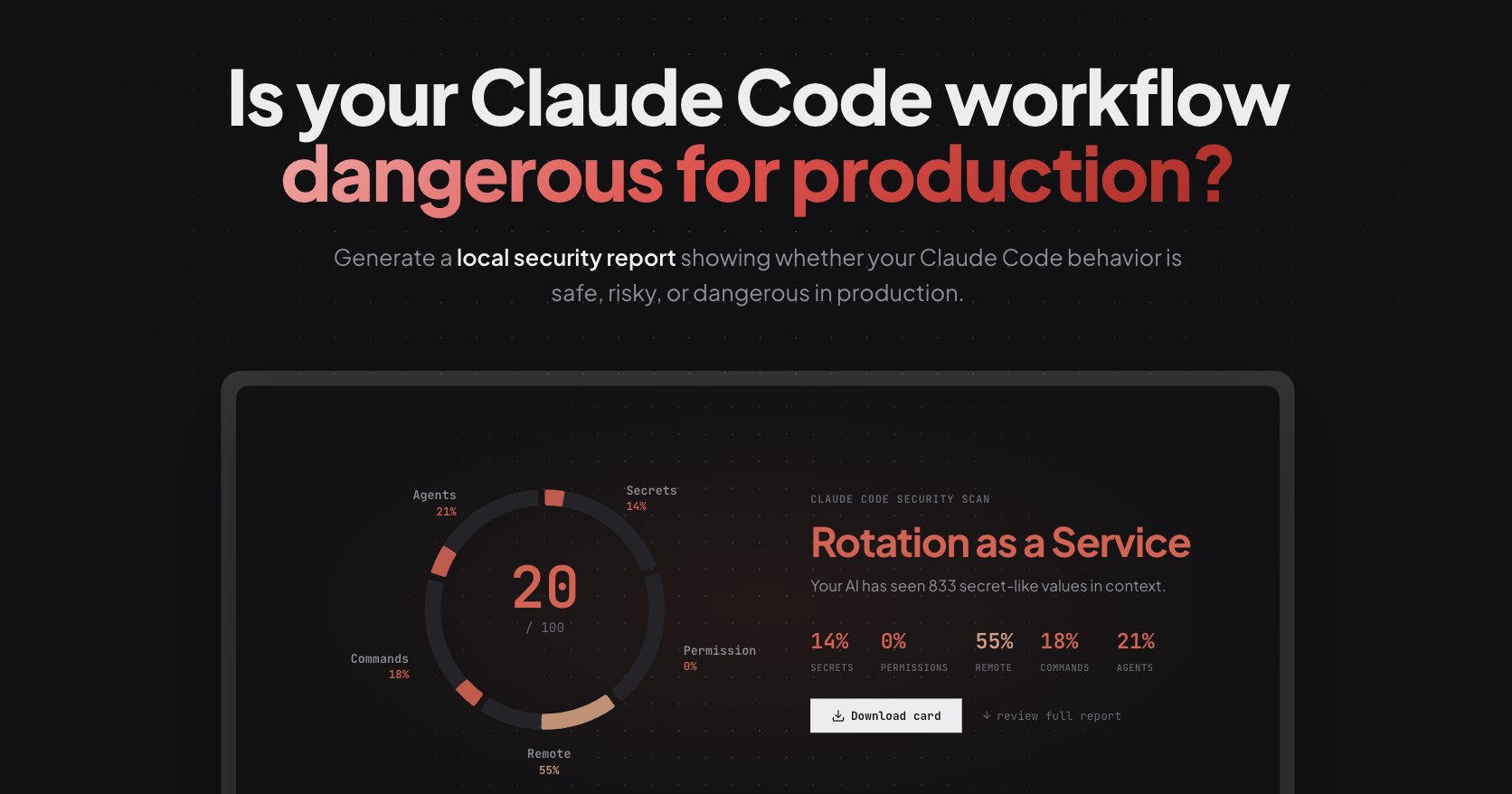 Generate a local security report showing whether your Claude Code behavior is safe, risky, or dangerous in production.